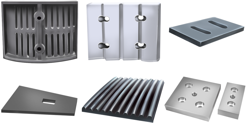 5、破碎機(jī)篩板:破碎機(jī)篩板也叫破碎機(jī)漏板、破碎機(jī)篦板、破碎機(jī)底板等。常見的破碎機(jī)篩板有長(zhǎng)方形、方形、圓形、窄細(xì)孔形、花板形等,材質(zhì)有高錳鋼、高鉻鑄鋼、耐磨合金等。