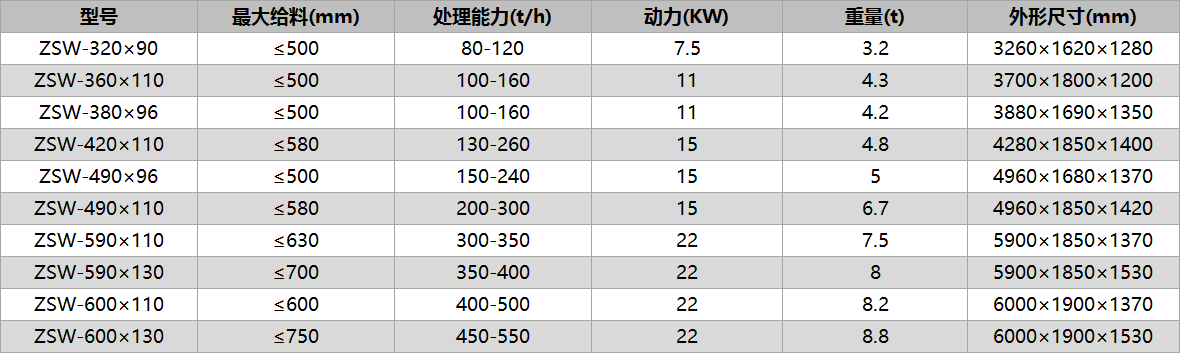 振動(dòng)給料機(jī)又稱振動(dòng)喂料機(jī),在生產(chǎn)流程中可把塊狀、顆粒狀物料從貯料倉中均勻、定時(shí)、連續(xù)地給到受料裝置中去,并對(duì)物料進(jìn)行粗篩分。普遍用于冶金、煤礦、選礦、建材、化工、磨料等行業(yè)的破碎、篩分聯(lián)合設(shè)備中。 【進(jìn)料】<750mm 【處理能力】80-550t/h