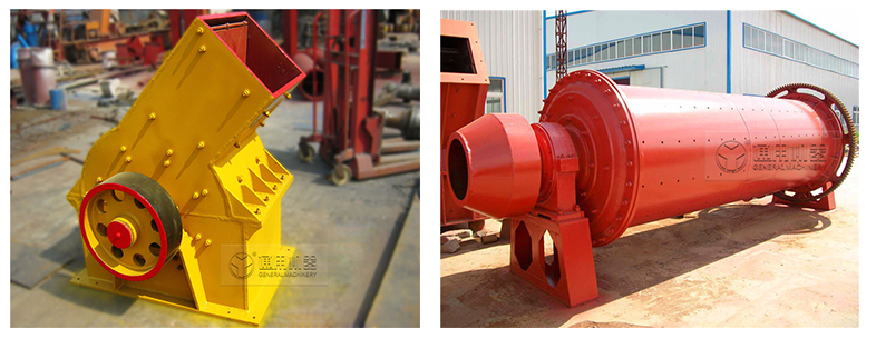 首先,100-200mm 的物料經(jīng)過(guò)錘式破碎機(jī)破碎小塊<15mm;然后,通過(guò)提升機(jī)提升到料倉(cāng),經(jīng)過(guò)自動(dòng)給料機(jī)均勻送進(jìn)高效球磨機(jī)內(nèi),經(jīng)過(guò)球磨機(jī)內(nèi)部鋼球與鋼球和襯板之間的研磨,達(dá)到細(xì)度要求的細(xì)粉經(jīng)過(guò)風(fēng)機(jī)的風(fēng)力作用,通過(guò)分析機(jī)進(jìn)入集粉器,在集粉器中收集下來(lái),將成品物料經(jīng)過(guò)打包后送往市場(chǎng)。